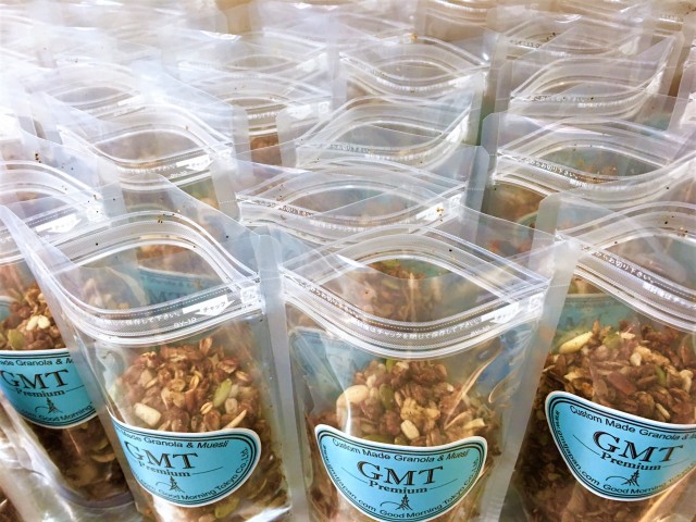 GMTグラノーラは、どれもアメリカから直輸入したオーツ麦を主原材料に、カナダ産ピュアメープルシロップを加えて丹念に手作りで焼き上げています。